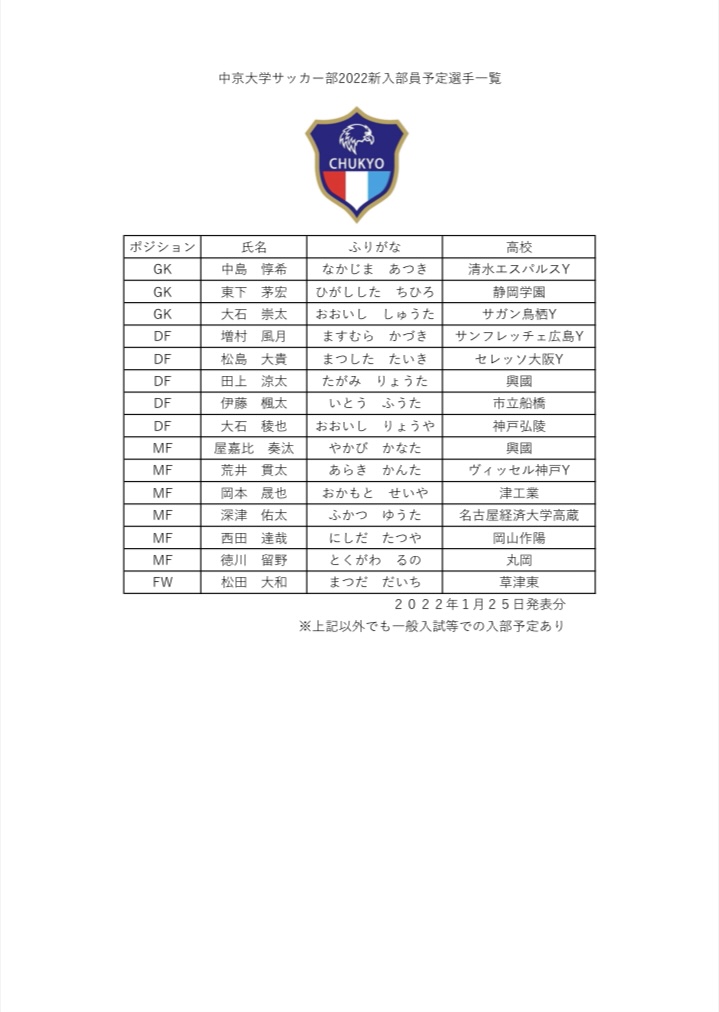 2022年入部予定者について